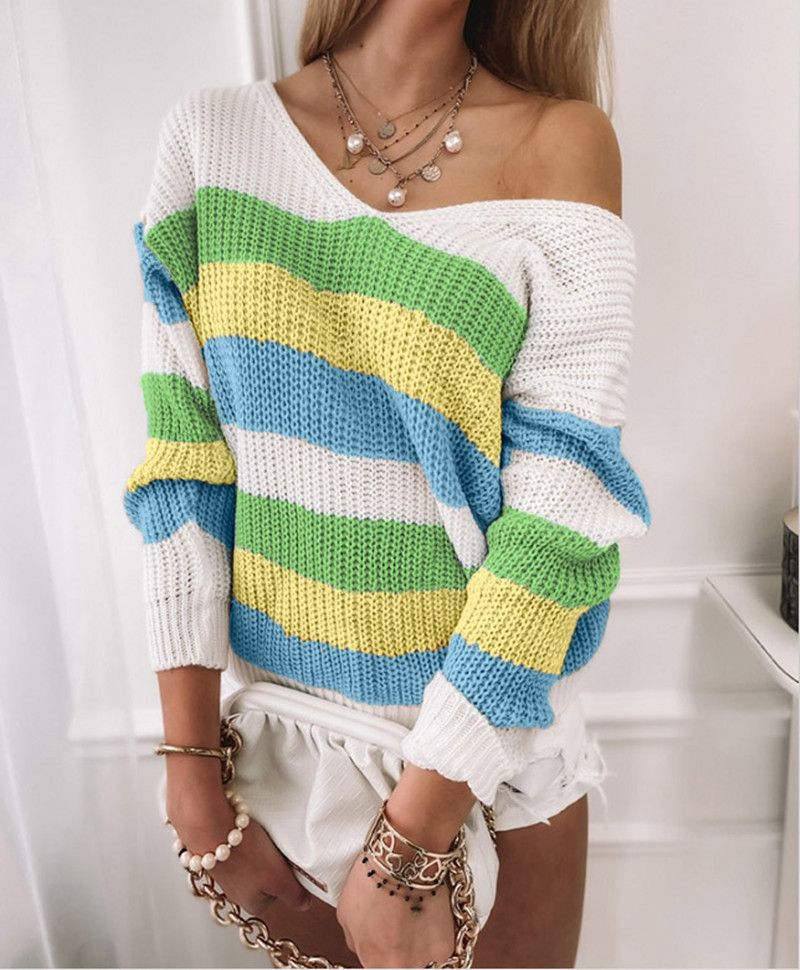 Winter Fashion Women's Sexy Halter Cross Color Block V-neck Woolen TopWinter Fashion Women's Sexy Halter Cross Color Block V-neck Woolen Top